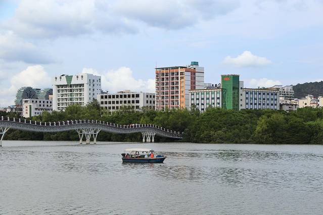 蜿蜒的情人桥架在 三亚 河的碧波荡漾之上,无论白天还是夜晚都是这里最美的景色。这里其实挺悠闲自在的,看看沿河两岸的风景,心情也会豁然开朗。