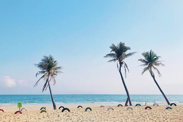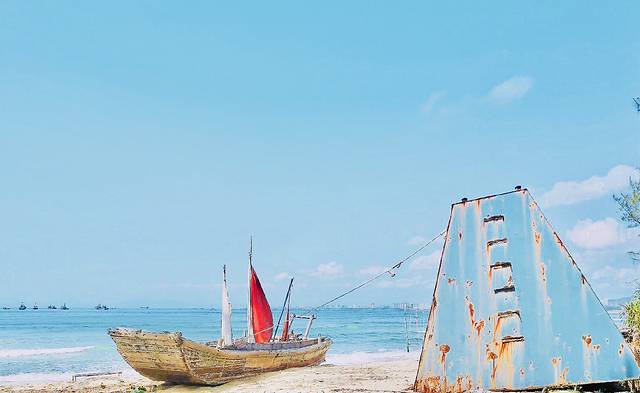 名副其实网红打卡地,小粉车,小白车子都可以在这里找到。各种小清新风格的照片都可以在这里拍摄。小岛,椰子树,渔船,在呆呆岛上发呆,听海声,在沙滩上踏浪,感受海风拂面,享受这个海岛带来的浪漫,静美,惬意。