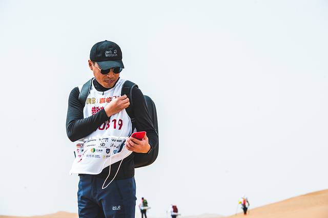 漫漫沙漠里徒步,每个人都要忍受高温和暴晒,以及随时可能刮起的漫天风沙,在行进的路上,我看到多位参赛者因为中暑,或者体力不支被救助。