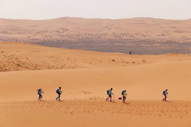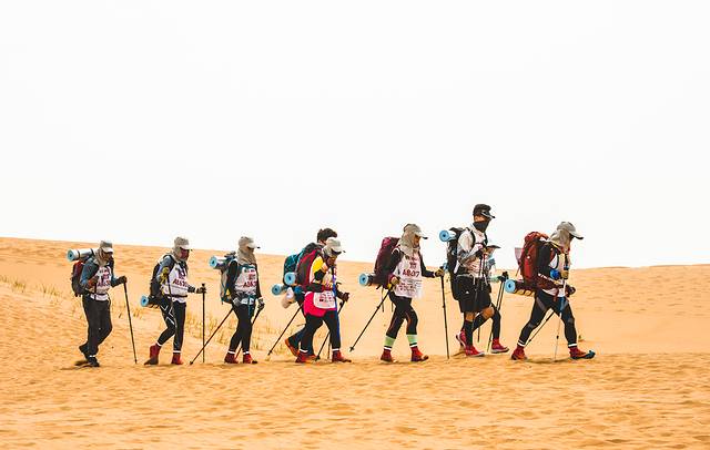 但在这一片浩瀚无际的沙漠中,队员们坚持徒步走完赛事,大家彼此搀扶,相互激励,团结一致的精神,确实让人感动。
