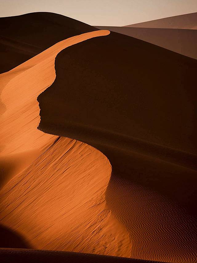 偶尔放眼望去,即便高温炙烤,那连绵沙丘也成为令人赞叹的美景,就连脚下小小的沙虫也显得可爱起来。