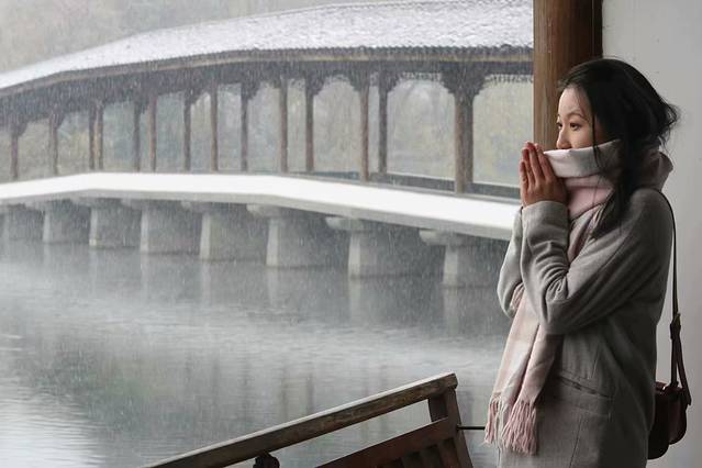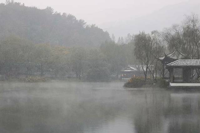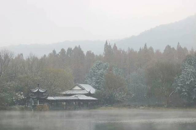 从云栖竹径出来,才下午1点多钟,看着依然不停的雪,已然被冻傻的我只想回酒店暖暖的窝着,结果被小仙女拉着再去湖边。不过感谢小仙女的坚持,我们见到了此行最美的景,远远超过走都走不动的断桥,打着雪仗的音乐喷泉广场。