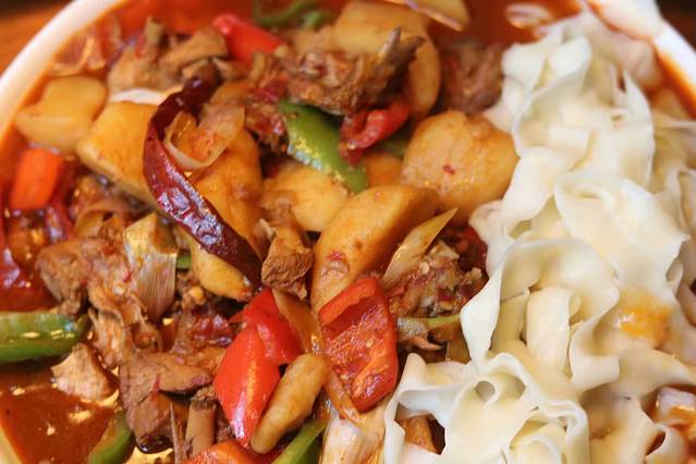 和小仙女选了一个新疆菜,我一直比较喜欢新疆菜,符合我的美食观,肉多,口味重,有手工面。点了5个菜,为什么我和小仙女要点这么多了,只因为,能吃,我能吃,小仙女更能吃。