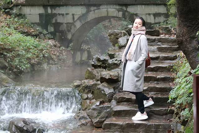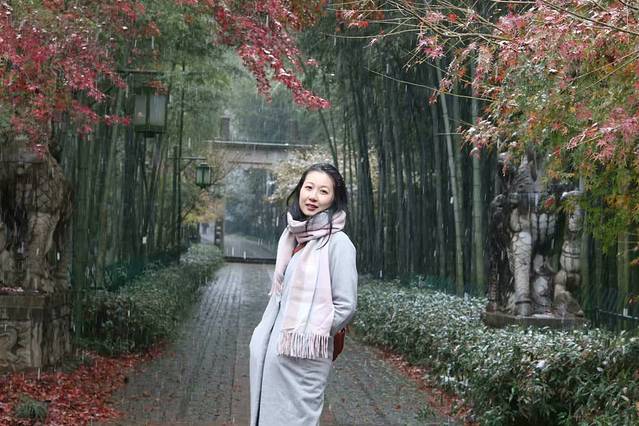 从素描餐厅出来,雪依然没停,路上也比较滑,看看附近,发现离云栖竹径不远,公交几站路就到,吃饱刚好过去散散步。