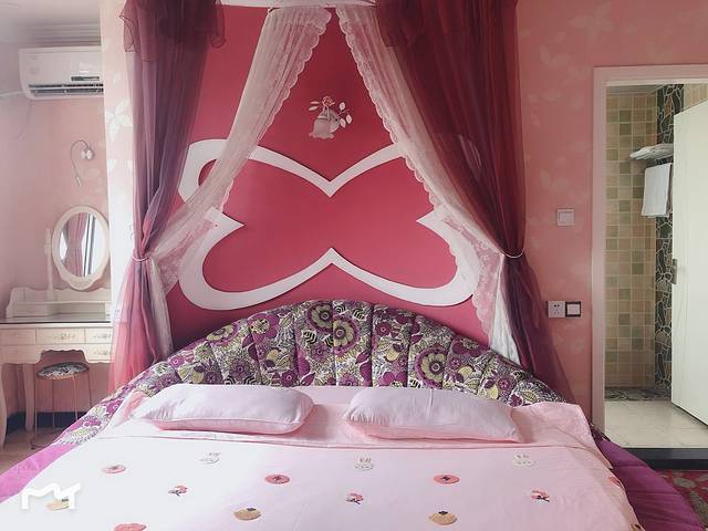 闺蜜住过一次这个房间。自己家里肯定不敢装修成这种粉色系的,也就只好通过旅行圆自己一个梦了。