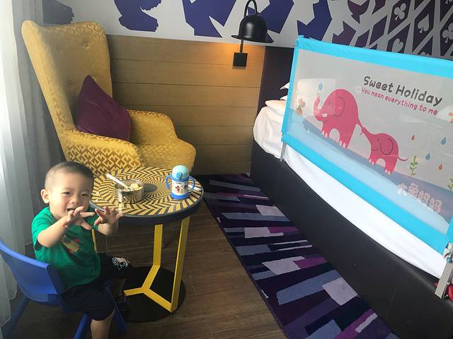 没定到大床本来订的杂戏房要等到下午三点才能入住!带着小孩太累!+200元可以升级魔术房!马上入住、太重要了!可以给小孩吃饭休息、洗个澡!这200花得值了