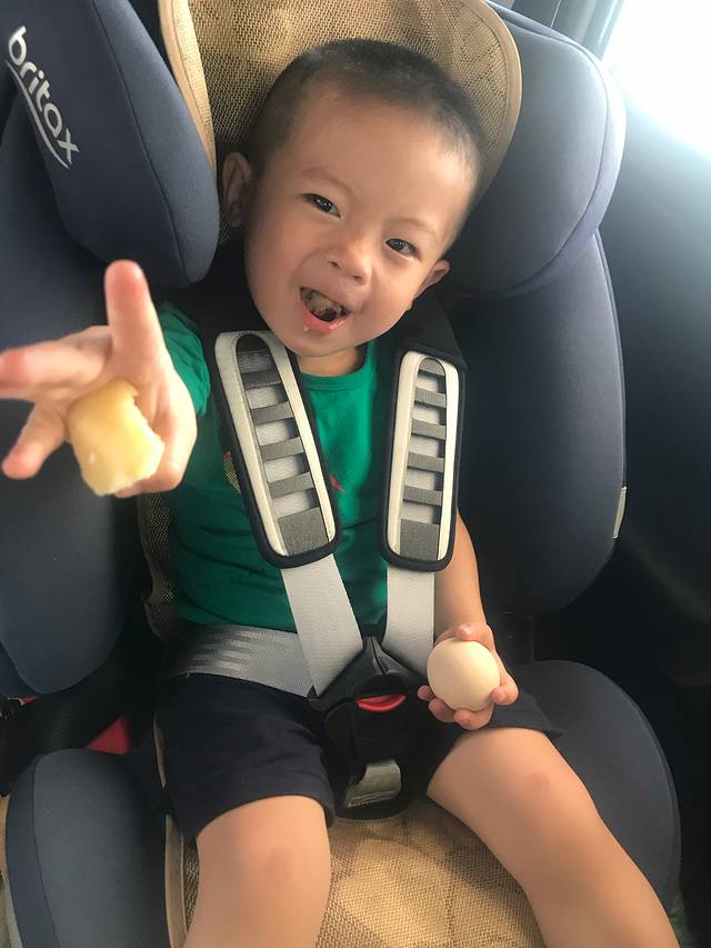出发前发射眼神光波,宝宝一上车就开始睡,也肯坐安全座椅!挺乖的