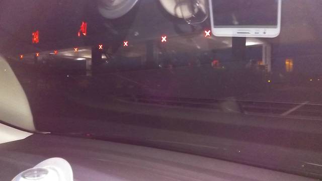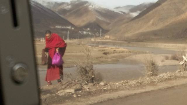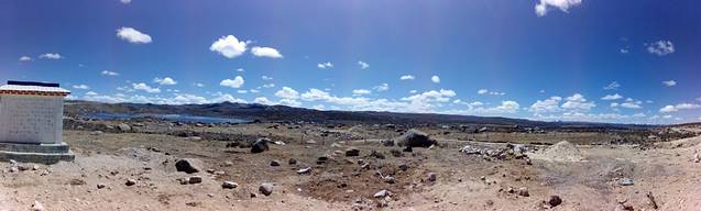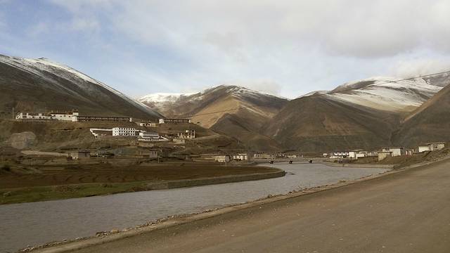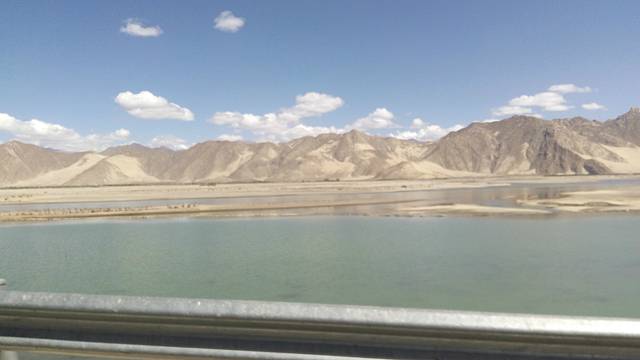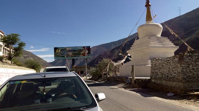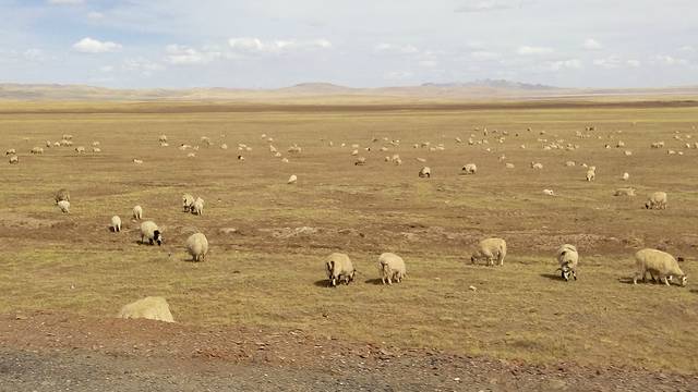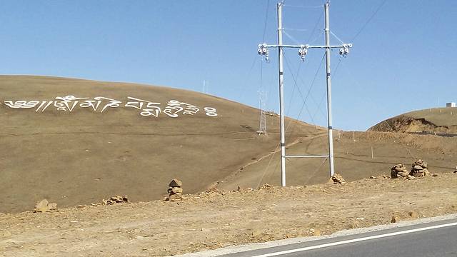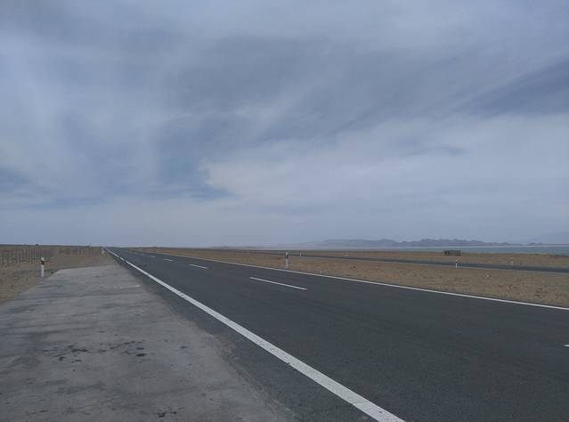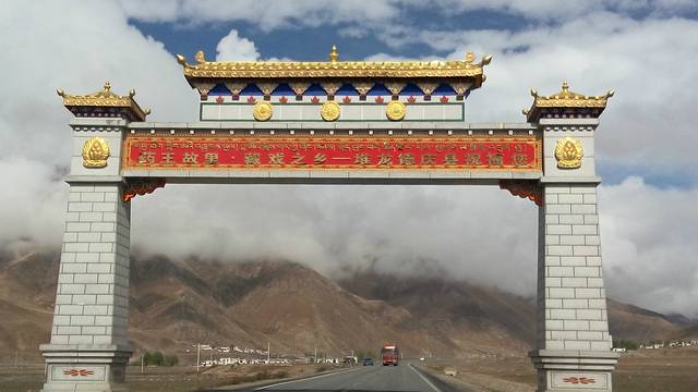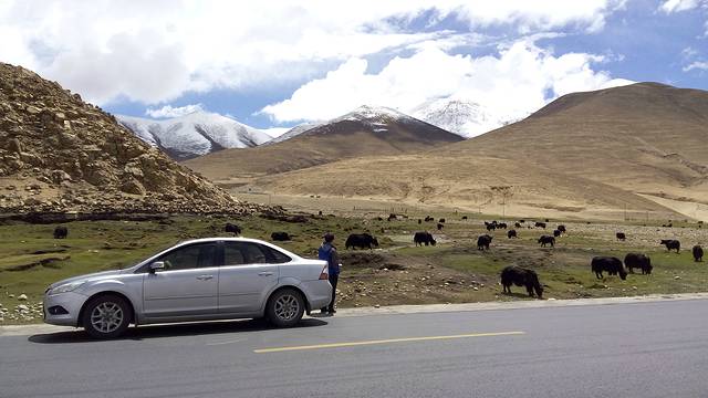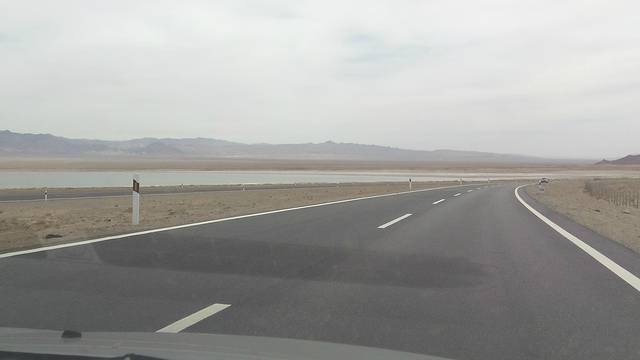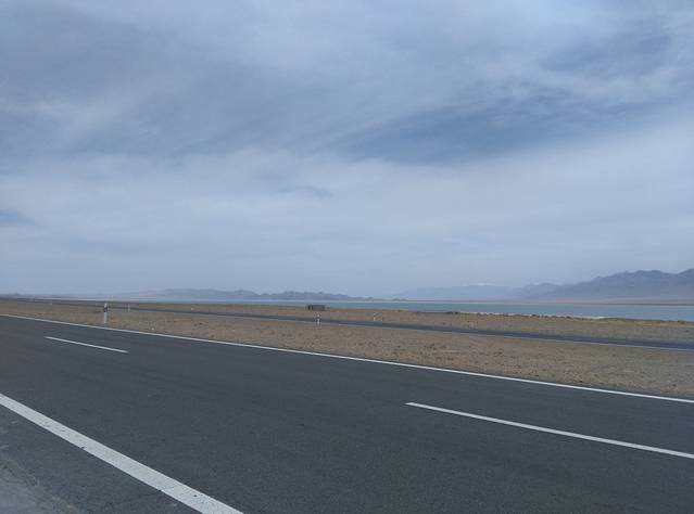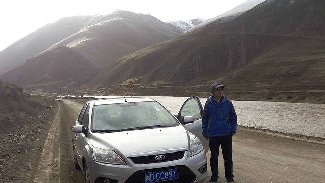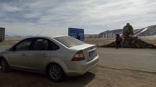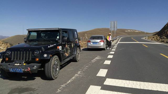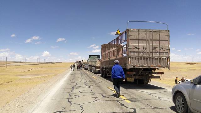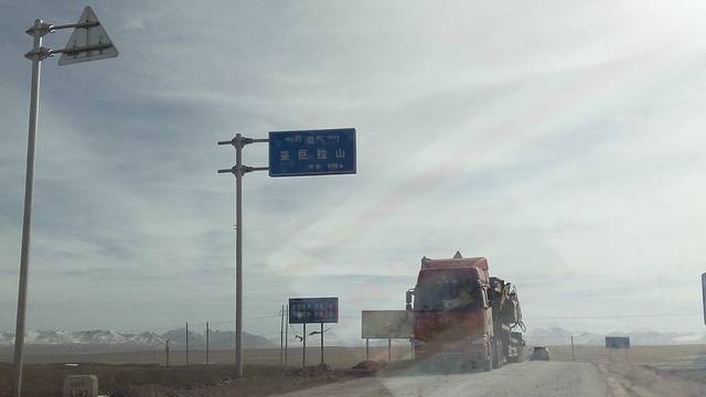 一辆运载水果的大卡车在前面500米处翻车,一辆大型起吊车正在帮助这台卡车翻过来,导致青藏线大堵车,我们打开被堵了一个小时