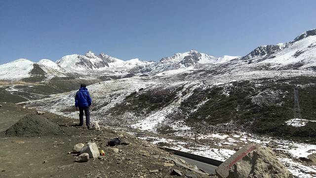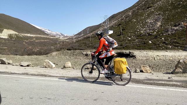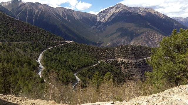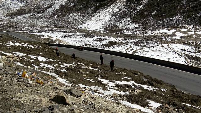 出了康定就开始爬折多山,骑行者们艰难的向上