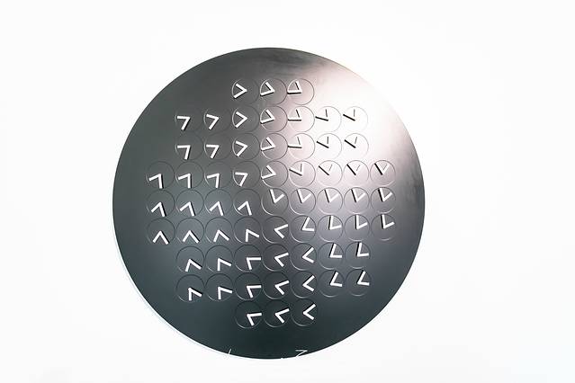 展览以北栅丝厂的一只圆形时钟开始。然而这个时钟上的多根指针无序地变化着,构成各种图形,只在每一分钟即将结束的时候,用阿拉伯数字显示当下的时间。在此,艺术家操控着钟面这一全球公认的时间符号,将时钟从单纯的功能性中解放出来。在这件来自艺术组合Humans since 1982 的作品《时间永不停歇 61c》中,时间作为一种概念、一种抽象符号被打破。