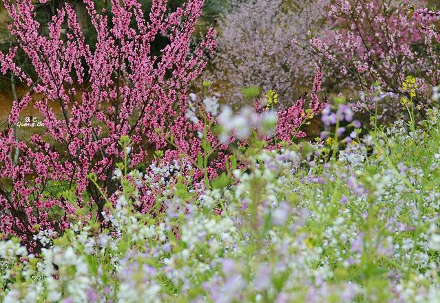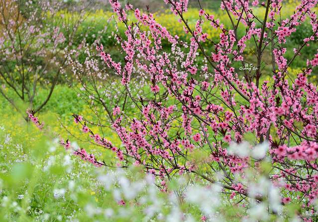 从土城去毕节基本都是走高速公路,三月的贵州,既春光明媚又雨露滋润,公路两旁的梨花油菜花开得灿烂夺目,由于高速公路是不许停车的,只能在车上看了。来到这个高速路的服务站,发现服务站旁的村落田野长满了桃花油菜和白色的不知名的花,于是停车走过去。