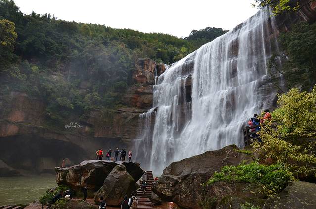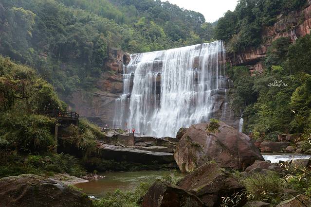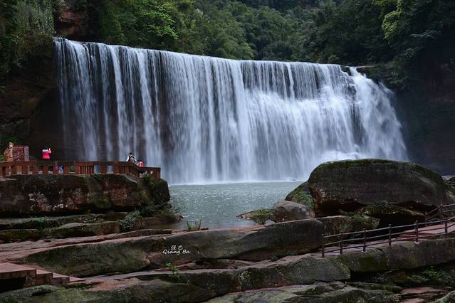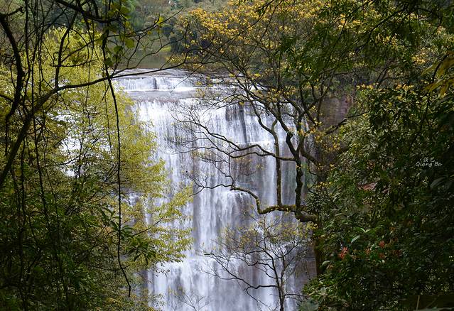 美人梳瀑布,中国帘状瀑布的典型代表,高18米,宽75米。