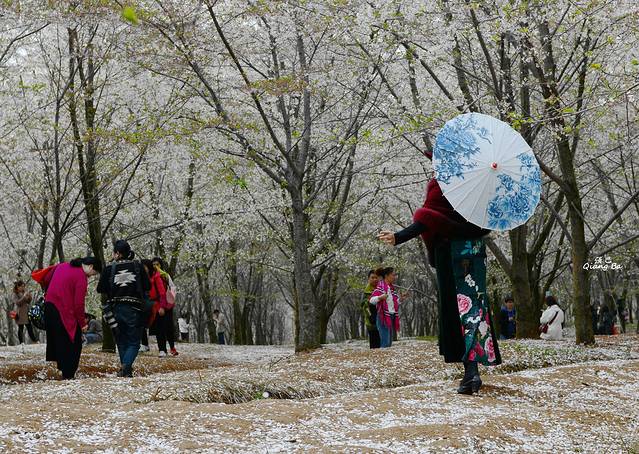 从青镇市去安顺平坝就二十公里左右的路程,近年安顺平坝农场万亩樱花成为春游贵州的热点,从三月下旬开始,每天游客如云,星期六日景区附近通常堵车数里,我们没安排第一二天到平坝就是怕被堵在景区外(第一二天即3月23、24日星期六、日),结果错过了最佳花期,却看到平坝樱花唯美的另一面——如雪般飘落满地的花瓣,梦幻迷离。