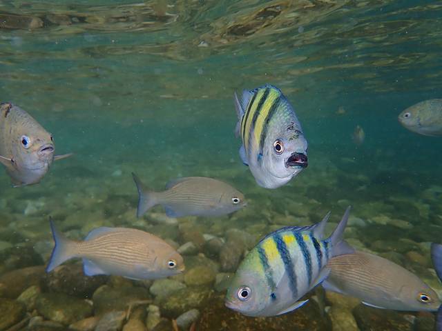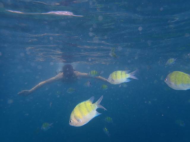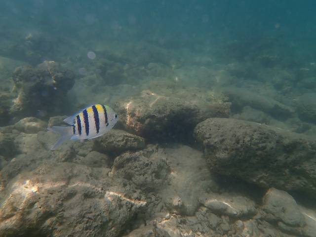 位于长滩附近的浮潜点,好多好多的五线雀鲷。