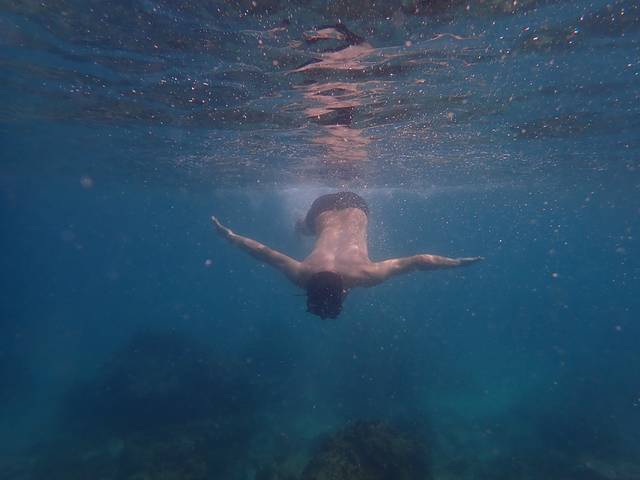 我们两个人都能游几米,水下能屏气半分钟,拍照可谓每秒必争。
