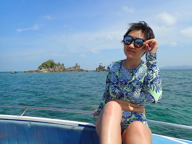 伤口敷了一层厚厚的防晒霜,乘上小船出发了。