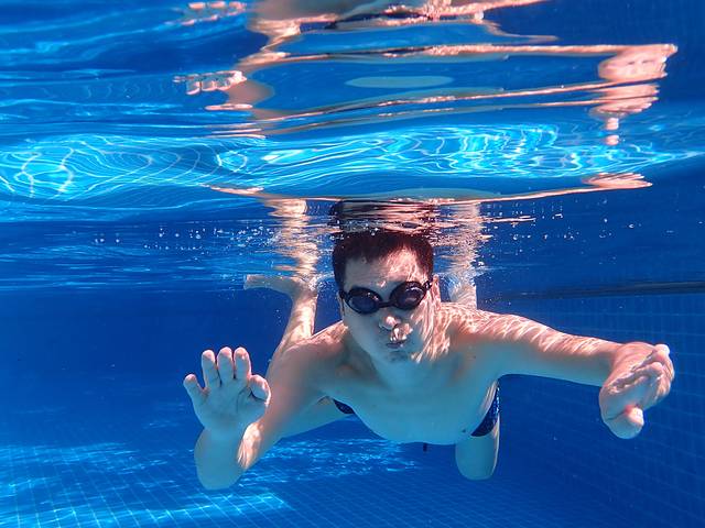 尼帕酒店,趁着午后明亮的阳光,先在泳池里试拍几张。水下自然光线模式,阳光直射效果最佳。
