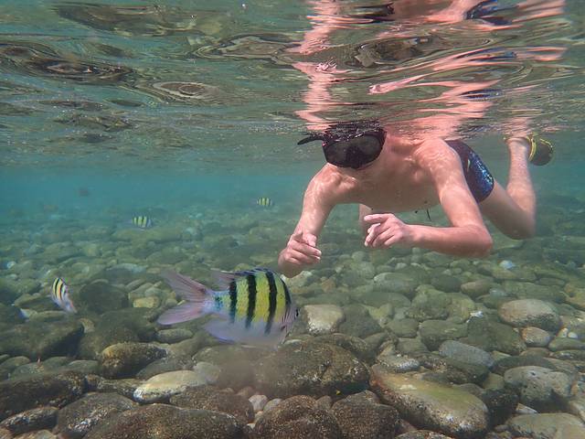 这里更适合深潜,海底有许多海胆,深潜需要穿潜水鞋。