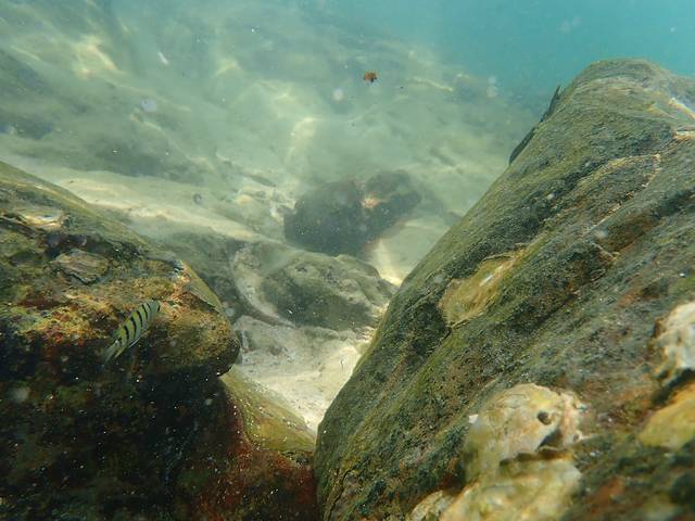 海底小鱼极多,非常漂亮。但水比较深,拍照很难。
