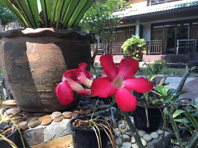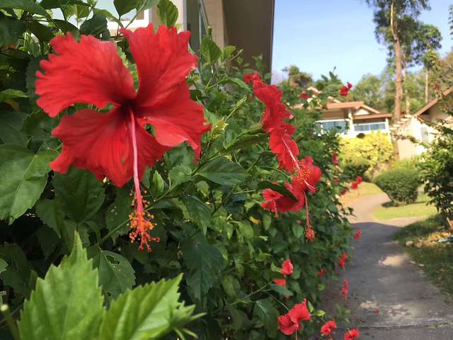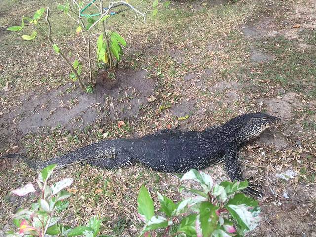 海滩上面即为皇家专享的“拉查酒店”,游人不能踏入半步,相当的霸气。住一晚当然能体验帝王的享受,不过要3000多人民币。我们选择了岛上另一家“班芝温泉度假酒店”,需要坐10分钟拖拉机到达酒店,路上遇见了传说中的大蜥蜴。