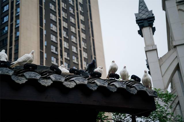 一群站在屋檐上的小鸽子,它们应该算是老街这些年变化的见证者了