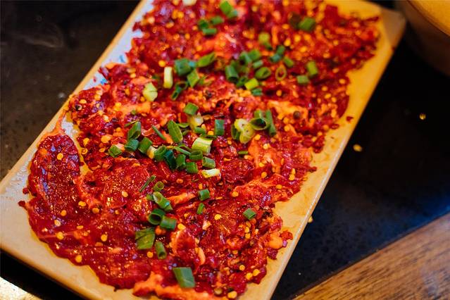 还有它家的麻辣牛肉!没想到吃过无数家火锅店的麻辣牛肉的我,居然会在一家景区附近的火锅店大叫好吃。鲜嫩的肉片,裹着辣椒面,花椒的麻和汁水的滋味被揉进肉里,非常的入味,薄厚也刚刚好,不会是很薄的完全软烂的肉片,也不是厚厚的硬硬的,非常始终,烫一会就能拿出来了,不需要那么多花里胡哨的酱料,但蘸油碟就非常美味了!