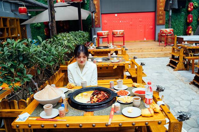 本着尝鲜的我们毫不犹豫地选择了室外火锅就坐哈哈哈,室外火锅吃完也不会一身的火锅味,吃饭中途还有川剧变脸的表演。