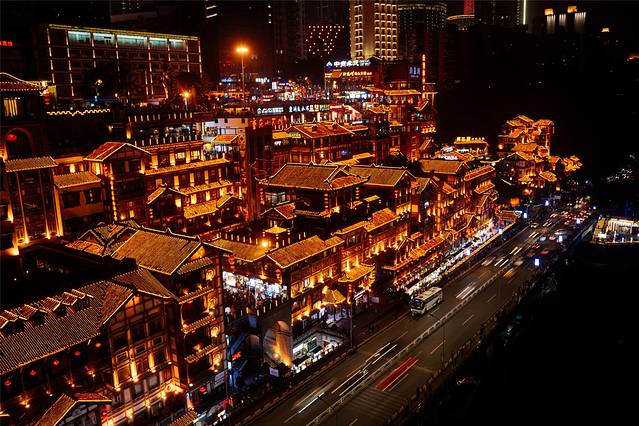 来重庆之前,最期待的景点就是洪崖洞了。特色的吊脚楼,在夜里辉映着橘红色的灯,妖冶迷人的光芒好像烧遍整个街区。梦幻的景色,渲染出的非人间的神秘感。好像这里,本身就是一个,故事发生的地方。