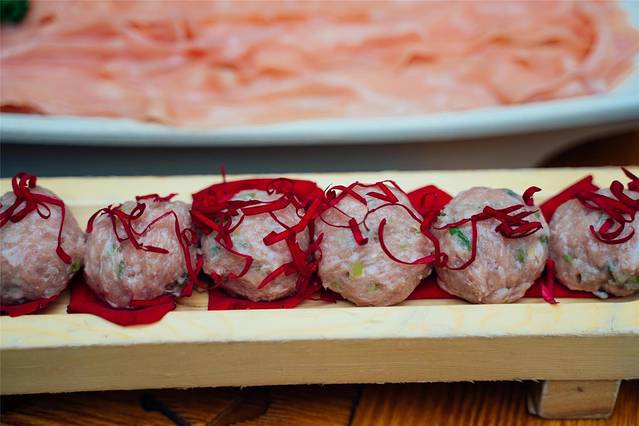 贡菜爱好星人快看过来!【贡菜丸子】,摆盘很漂亮,上面好像是玫瑰花瓣~Q弹的丸子带着贡菜的清香,搭配红油火锅真的很合适~