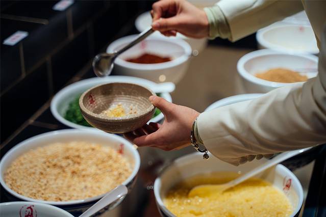 吃火锅来一碗红糖廖糟汤圆,暖暖的小汤圆,软糯香甜,被火锅造的热辣的喉咙和胃一下就被舒缓了,热乎乎的,还有美容养颜,活血化瘀的功效,舒服的不行。