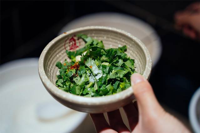 火锅之前当然要先调一碗料碟,它家基本的调味料都有,香菜一定是我的料碟必备调味,加上蒜米葱花和干辣椒,就是美味又简单的我本人的秘制配方!