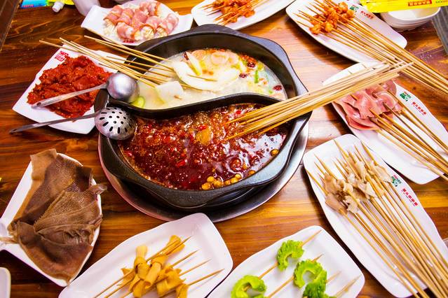 除了我们印象中传统的火锅外,成都还有一种异常火爆的火锅:串串香。永远弄不干净的地板和桌子,永远慢吞吞的服务员,永远找得到油挂在碗边的油碟,不过这就是串串的特点,是可以大声喧哗,可以扯起嗓子喊“小妹儿数签签”,可以吃热了脱去上衣,可以两个人吃十八种菜的地方。