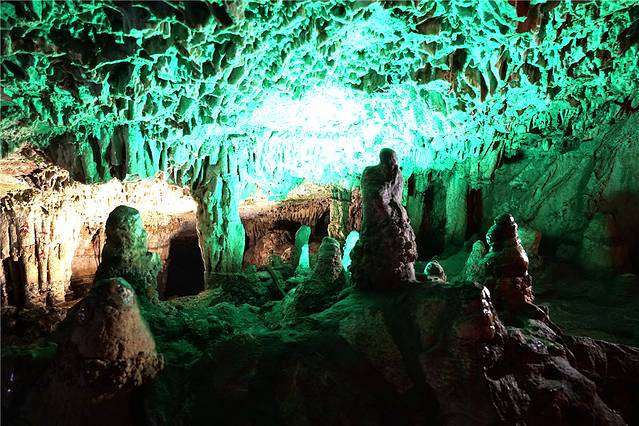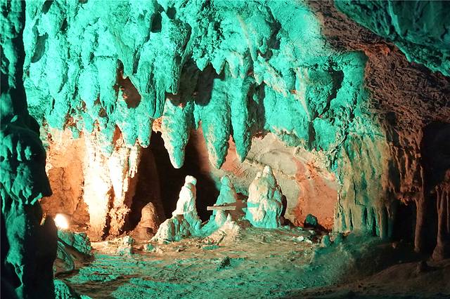 岩洞曲折蜿延,有的地方平坦宽阔,有的地方狭窄陡峭,但是洞中景致不断变换,让人目不暇接。上亿年石灰质、水、空气造就了洞中千奇百态的石景观,有琼楼宇阁,有莲花瑶林,自然也就有民间传说故事了。溶洞中最为绚丽,最有看点的当属一、二层。