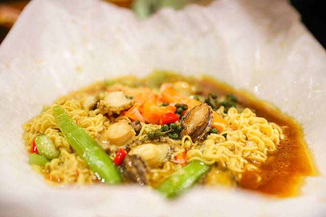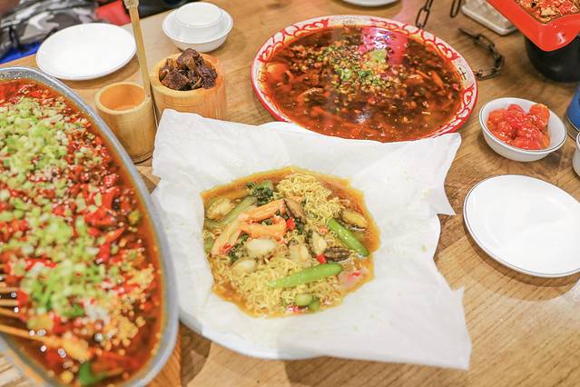 菜上来的时候是用一张纸包起来的,里面主要有鲍鱼,蟹腿,拉面,想吃其他火辣的川菜这道菜显得平淡了许多,一定要香辣清淡的菜搭配着点。