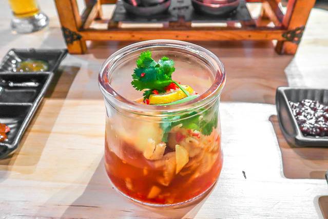 一共上了六种不同口味的蘸料,和朋友不约而同的都喜欢这个泰式秘制蘸料,味道酸酸辣辣的,服务员看到我们都喜欢这个口味,贴心的给我们每人都加了这个蘸料。