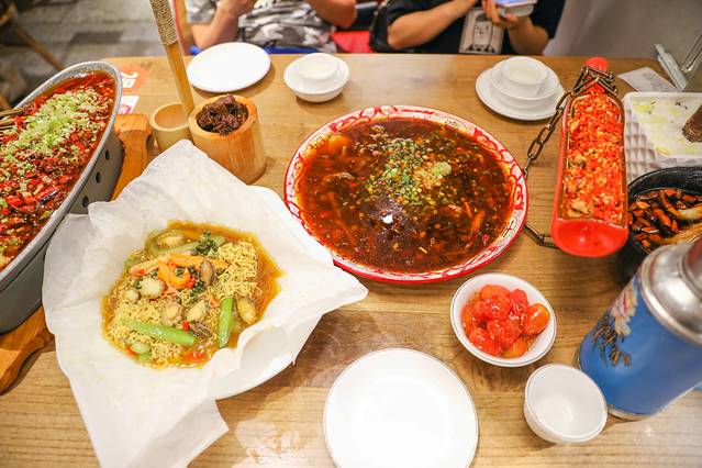⚡️来 成都 一定要做一次地道的 成都 吃客, 中国 菜系那么多我想应该没有人会拒绝香辣的川菜吧。整个饭桌上放眼望去一片红彤彤的辣椒,光看着就很有食欲,吃起来更是过瘾 。三个人点了七道菜。