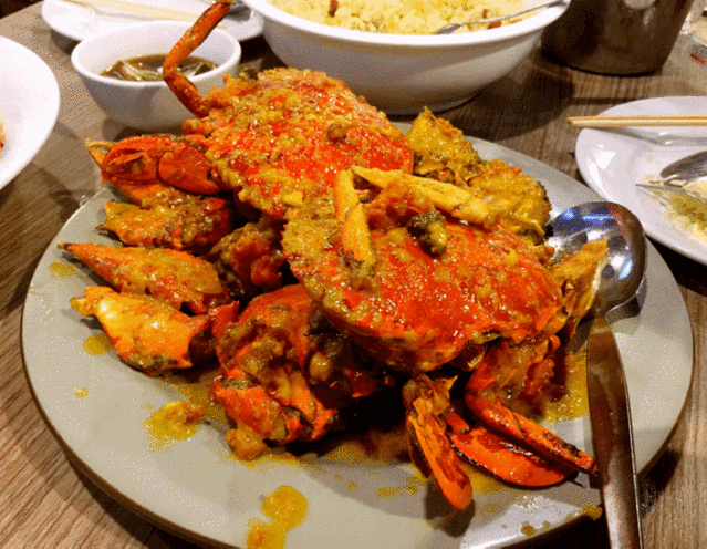将蛋黄和螃蟹搅拌在一起炒,蛋的浓香味和螃蟹的海鲜味融合在一起,别有一番口感,很多海鲜店都能吃到这道菜。不过也有咸蛋黄炒蟹,个人感觉味道很咸,不是特别好吃,可能对于口味较重的人会比较合适。