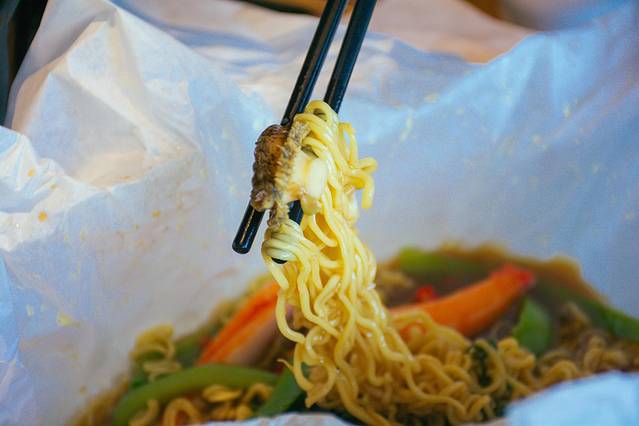 纸上焗鲍鱼:真的很好吃,里面还搭配了很多蔬菜,还有我最喜欢的泡面。