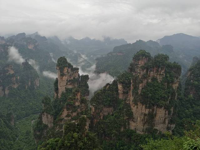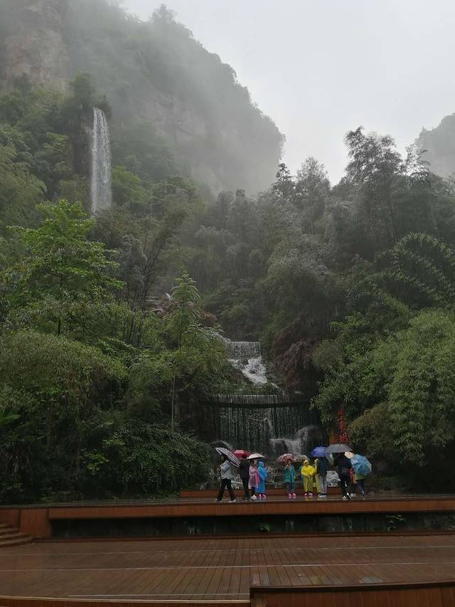 晚上回酒店,当地的小哥说:“我们张家界啊,一个月至少有10天在下雨,还有个节目叫烟雨张家界呢”!神补刀的我直接回了句:“一个月下十天雨,我们赶上五天”把小哥笑的。其实这天没怎么下雨,只是排队拿票时的一会会儿。