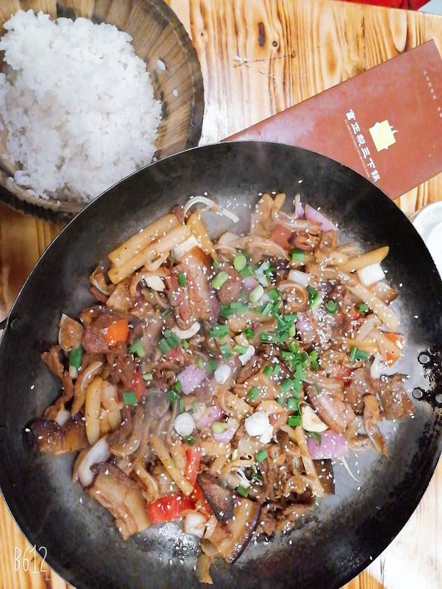 照片里的米饭,大概有四碗加的量(饭店里的那种碗)我中午没吃饭,直接吃掉了三碗加,小磊姐只吃了一碗啊。