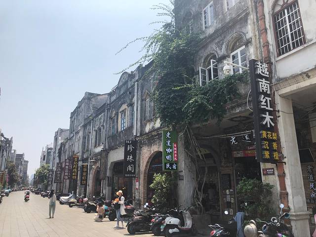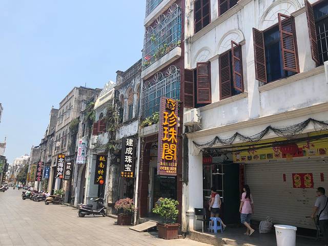 北海老街拥有近二百年的历史,建于1821年,整条街长1.44公里,说白了,大家可以理解为一条中西合璧骑楼式建筑的商业街。这里比较有特色的就是它的建筑了,大多为二至三层,当时受到19世纪末叶英、法、德等国的西方卷柱式建筑的影响,临街两边墙面的窗顶多为卷拱结构,颇有古罗马建筑的风格。北海老街离侨港风情街是有一段距离的,如果做公交,中途需要走一段不小的路,在这里,我推荐大家花个20块钱,打车,出来玩,方便第一。