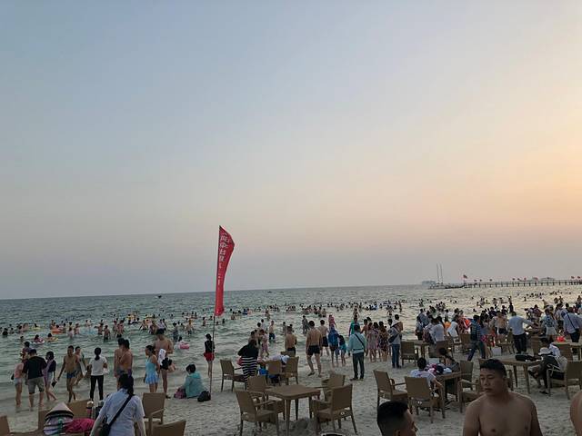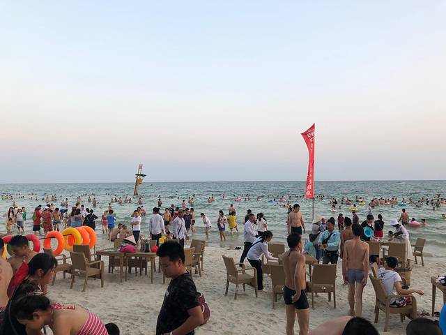 傍晚的银滩,大家可以看到晚霞落日的美景,当然那么多人,也不会觉得寂寞,哈哈