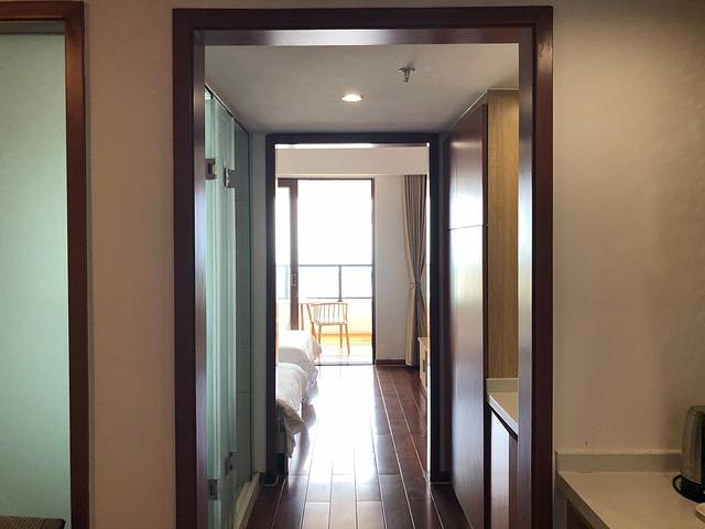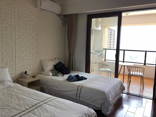 由于是在淡季,北海银滩旁边的酒店价格都很实惠,而我选择的这家酒店海景公寓,也是非常的好的,价格才一百三,这样的标间,非常值了,最主要的是这家酒店式公寓的其他房型更好,比如二室房跟大床房,都不贵,如果不是因为两个房间大小不一,不好分配,我肯定会果断选择2室房,才200元,这家酒店式公寓在阳光里小区,而且离银滩,也就2站的公交,走过去都没问题。