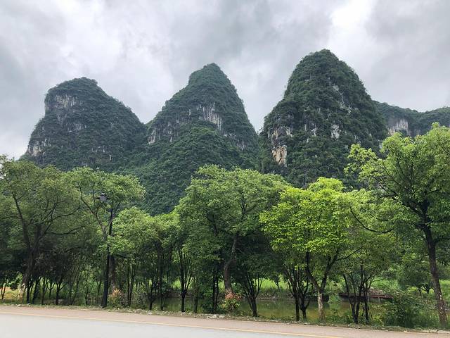 十里画廊景区,其实就由两侧山峦并排,中间一条公路,游客游览两侧的景色,犹如进入了画境一般,我这样这样解释,兴坪码头游览漓江与阳朔山林,走的是水路,而十里画廊游览,走的是旱路,景致十分相似。这里怪石嶙峋,林木葱笼,一路过去,还有数个景点可以给大家打卡。