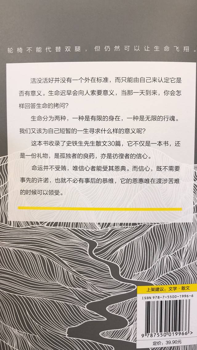 每次出现,我们都要为自己预备一本用于乘车时间阅读的书,这次我选择了史铁生先生的散文集