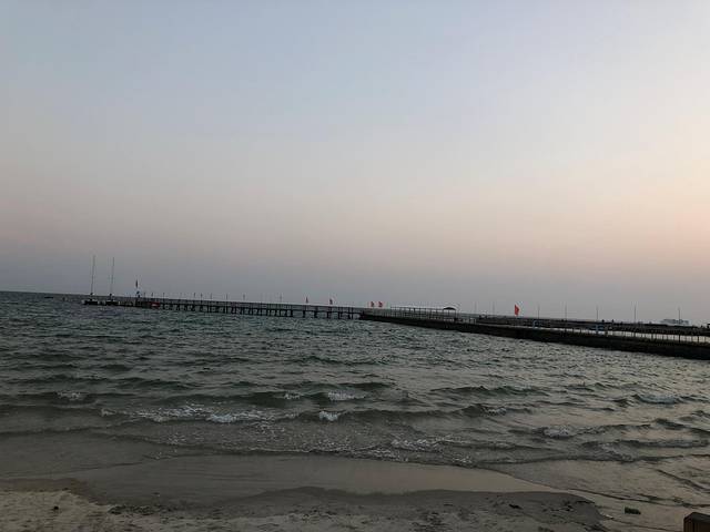 这条栈桥是不允许走的,所以我们偷偷的在这里拍照留念,一望无际的大海