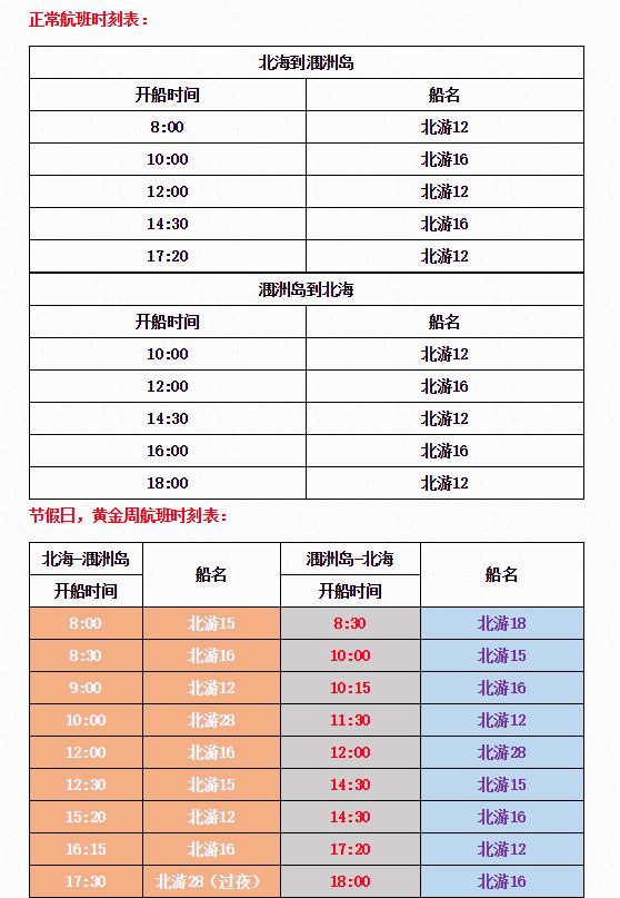 因为我们时间很紧,所以没有进岛,在这里把北海进涠洲岛的船次表奉送给大家,航行时间不短,得一个多小时哟。