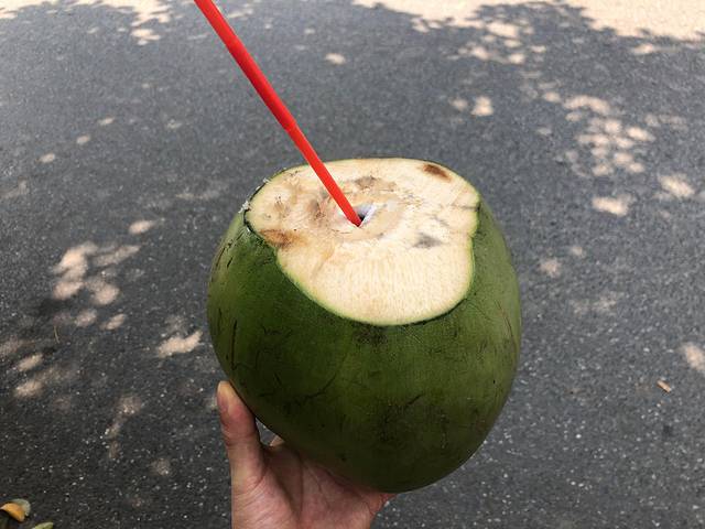 走的渴了,就地买一个椰子吃吃,也不贵,那么大的椰子10块钱,完全喝不完。