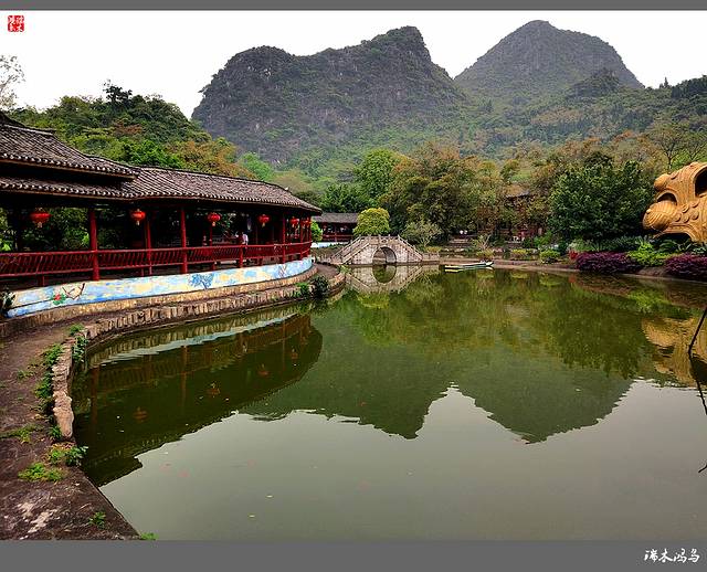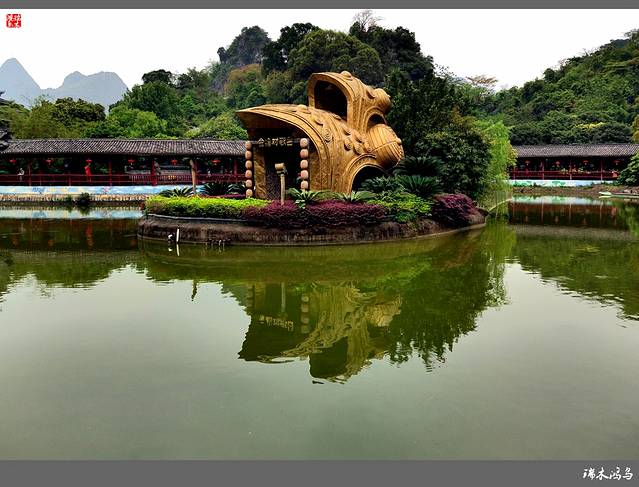桂林刘三姐大观园,坐落于风景怡人的桃花江畔,是集中展示刘三姐文化的经典主题游园。是桂林旅游业的一颗新星,它以刘三姐文化为主题,集观赏、娱乐为一体的休闲游乐场所,刘三姐是广西人民信仰的众多神灵中最具本土文化气息的传奇人物,关于她的传说其实就是本土普通民众的理想祈盼,在这里,人民热爱唱山歌,并以即兴作为一种游戏,优胜者可以获得幸运。基于这种特别的传统,本土文化中产生一个很重要的文化分支——独特的壮族山歌文化。刘三姐大观园,园外山清水秀,倒影如画;园内亭台楼榭,错落有致;有金蟾对歌台、石雕绣球、定情古榕等景色。在这里可以了解和体验壮族的歌、瑶族的舞、苗族的节、侗族的鼓等特色。这里有三姐吊脚楼、阿牛茅草屋,也有莫老爷莫俯的豪宅大院,鼓楼风雨桥高潮的建筑技艺令人惊叹不止,壮锦、壮族民族服饰展琳琅满目,走进刘三姐大观园,领略壮乡风情,山歌唱起来。晚饭后,我们登上了南行的动车,告别了美丽的桂林奔赴南宁。