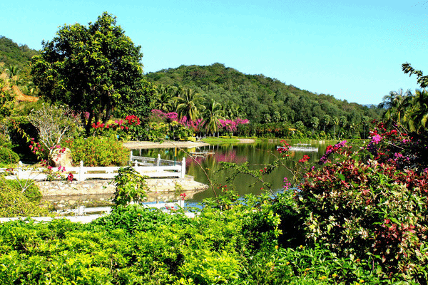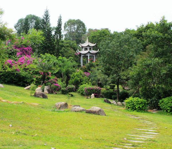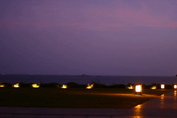 还有呀诺达雨林”、“南田温泉”,这些风景实在是太不新鲜,呀诺达雨林”有点象大号版的“北京植物园-热带温室”,没见过热带植物的可以去看看,和热带植物园大同小异,但是整体规划、园区服务都很好,感觉是国际公司在打造,林子里有一处吃鸡汤、野菜的露天餐厅,味道真是太棒了,南田那个地方的温泉都统称南田温泉,有了上一次的教训,我们事先做了功课,直接跟司机说去:“珠江南田温泉”,否则师傅又要给我推荐了。春园的海鲜已经做得比较烂了,倒是对面的“雪姐海鲜”,让我们大快朵颐,老板实在,海鲜的味道好,虽然,亚龙湾的海水再不是清澈的5种颜色,而且浮浅的项目已经停了,因为海水浑浊,浮浅什么都看不到,深浅看到的鱼都很少了,好在亚龙湾5号给了我意外的惊喜!在这样的海边,居然还有这样的庭院,幽深的美丽,白天到处是明丽的色彩,而到了晚上,隐隐约约的灯火,处处漾着神秘。真是“庭院深深深几许”啊!